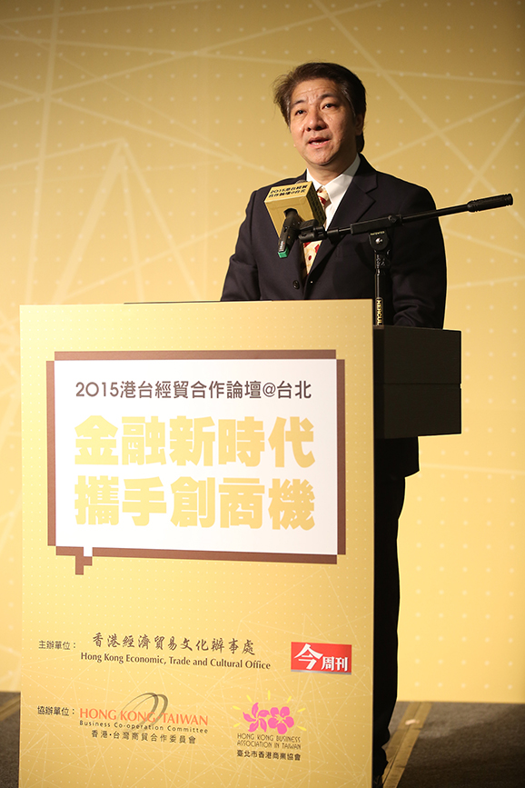 More than 250 economic and financial experts, academics and members of the industrial and business sectors from Hong Kong and Taiwan attended the 2015 Hong Kong-Taiwan Economic Co-operation Forum in Taipei organised by the Hong Kong Economic, Trade and Cultural Office (HKETCO) on 26 November. The forum explored the economic development and business opportunities in financial services in the Greater China region. It also discussed how Hong Kong and Taiwan can enhance collaboration and develop new opportunities in the areas of mutual recognition of funds and financial technology.